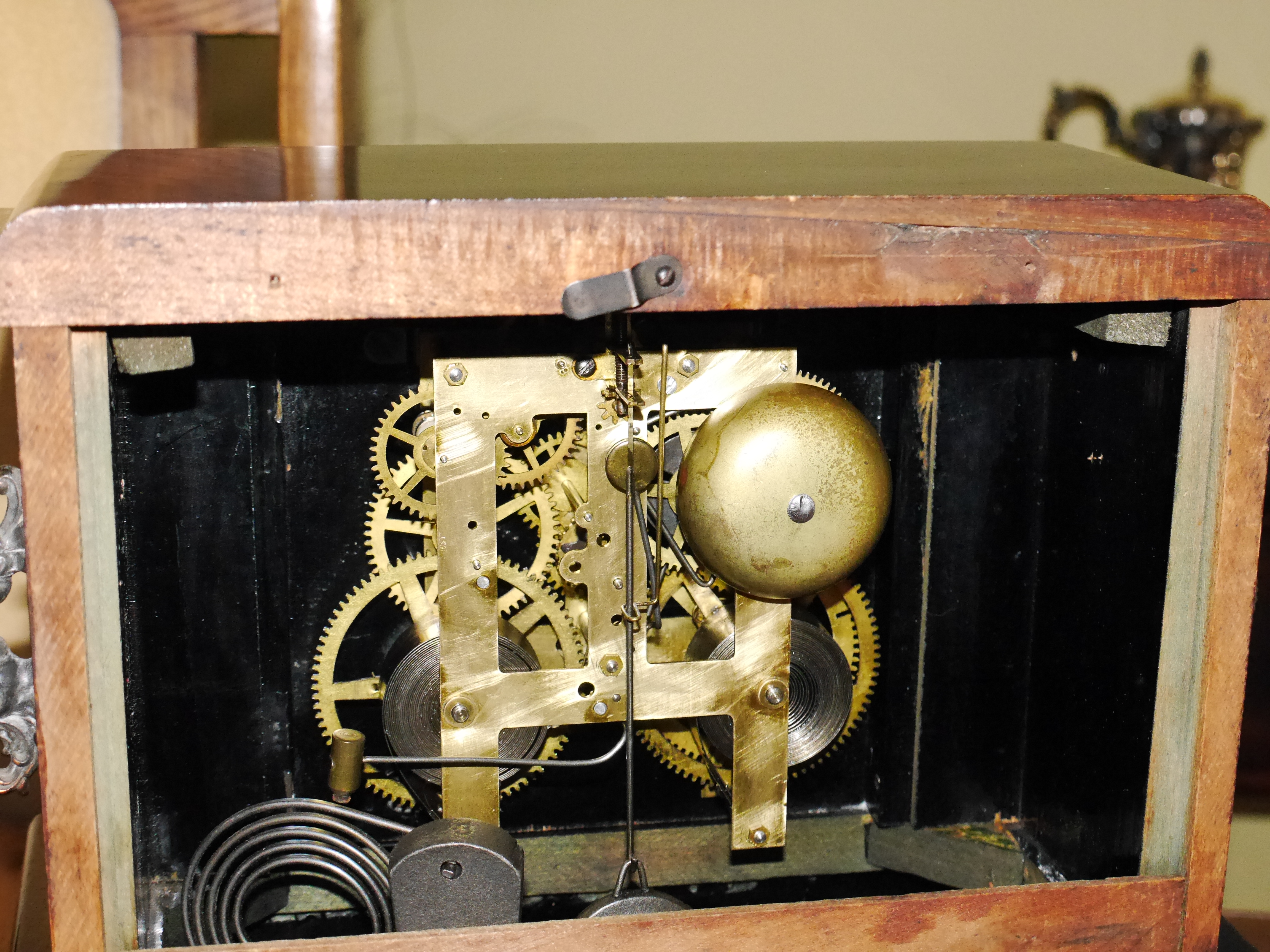 I imagine he wanted to ensure the clock found a good home—and it certainly did! The only drawback was the absence of a label, which is always a consideration when purchasing antique clocks. Otherwise, everything appeared to be in order. According to Tran’s book, the leading authority on American clocks, the Sessions Raven dates to the 1920s. It is a time-and-strike clock, featuring a bell for the half-hour and strike rods on the hour. I suspect it was named the Raven because of its deep ebony color—quite striking, in fact.