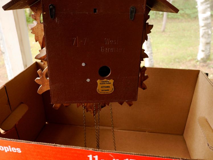he history of an object is a window to its past. This clock is a common 30-hour cuckoo clock made in West Germany in July of 1975 (photo below).) and thousands of these were made and sold all over the world. It has a Regula movement, still made to this day. Regula movements are made by SBS-Feintechnik, and are dated by a letter code. This one has the letter “V” which indicates that it was made in 2007.