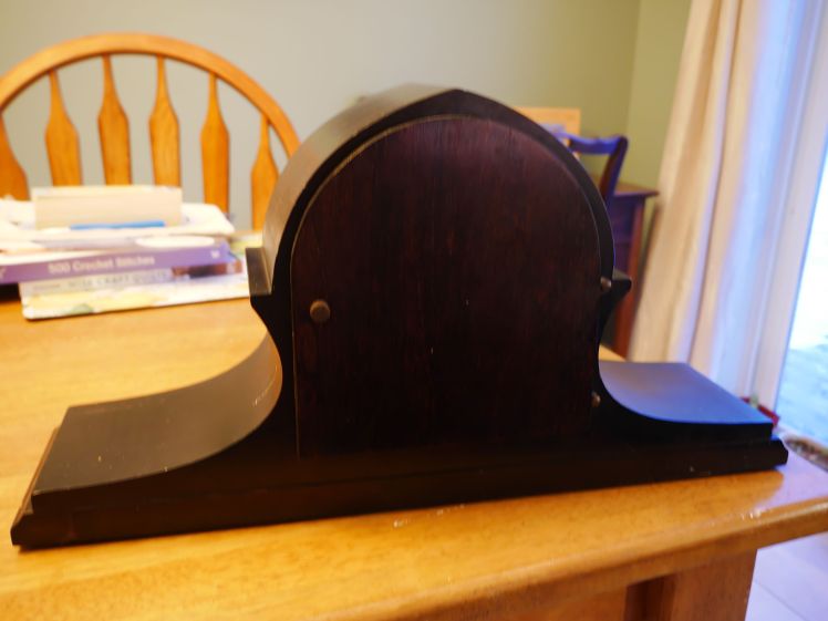 “Are you interested?” she said. “Sure”, I said, “put a maximum bid of $35”. We won the bid at $25 + tax and buyer’s premium, so, still under $35 CDN. Would I have paid more? Not likely. However, it is a handsome “Napoleon hat” styled clock but they were plentiful and cheap at the time and not particularly valuable or desirable today despite the fact that it is almost 100 years old.