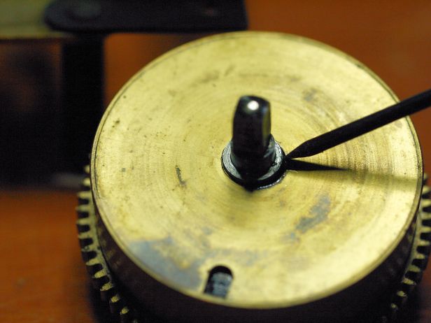 German clock movements from the 1970s were not always built to the highest standards, often plagued by two key issues: plated pivots and soft brass. Softer steel pivots were used to prolong the life of cutting machines, with plating added to provide sufficient hardness. Unfortunately, this plating wears away over time, leaving the pivot significantly worn.