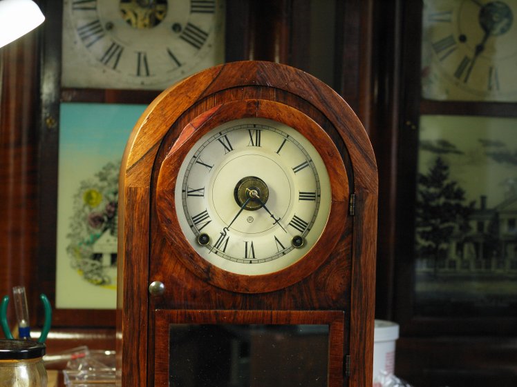 This shelf clock was purchased at the National Association of Watch and Clock Collectors conference in Springfield Ma. in June of 2019.