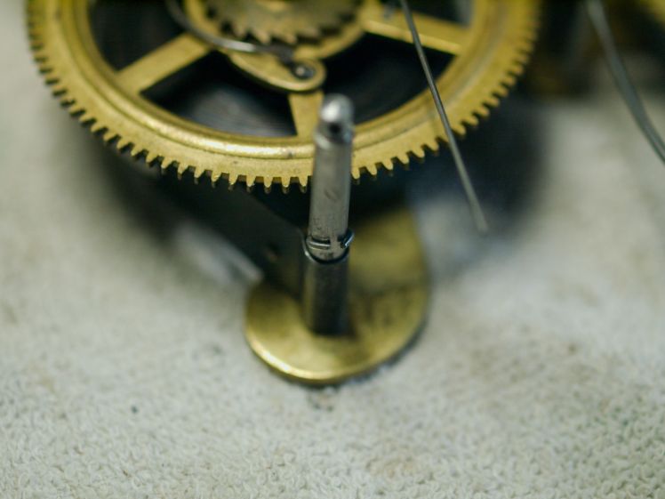 During my inspection, I discovered a protruding wire on a lantern pinion. Is it supposed to be there? If so, is the location critical? Yes to both. The count wheel must advance correctly in relation to the maintenance cam.