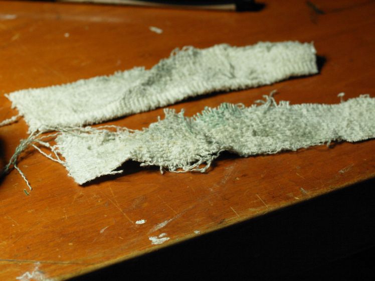 It is not easy to work with brass mainsprings. Care must be taken. Unlike steel springs brass mainsprings cannot be stretched out to clean. Once out of the ultrasonic cleaner I dried them with strips of terry cloth, working the strips in the coil as far centre as I could manage.