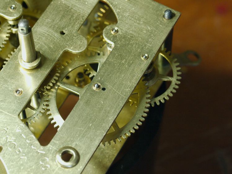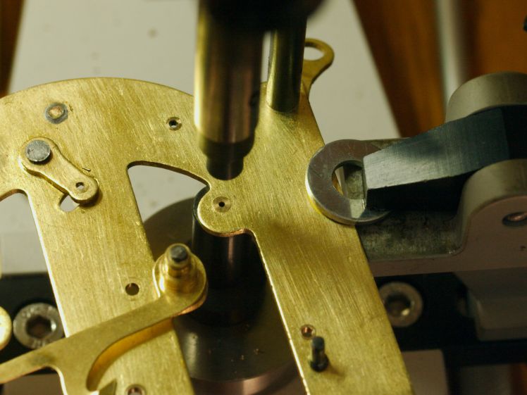 Once the time side wheels and the hour gear are in place I attach the third screw and then work the wheels and levers into place on the strike side. Once everything is in place I tighten all the screws. A pivot locator is your best friend when re-assembling any movement.