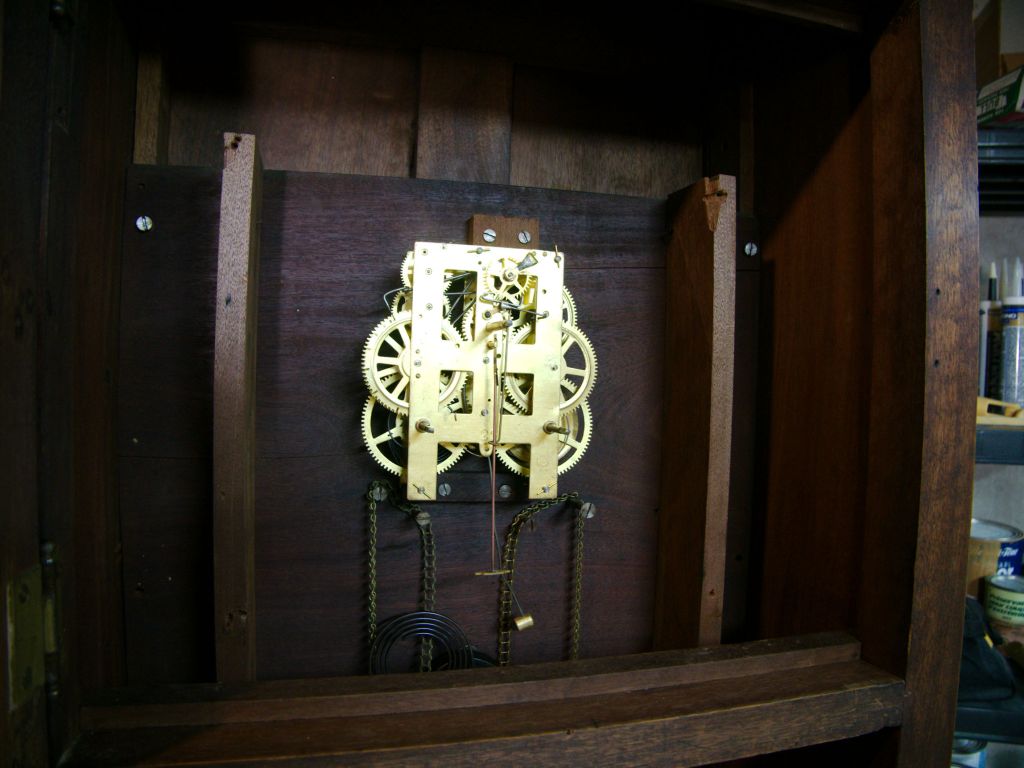 Is it a conversion? Was the old movement worn out and a new movement installed in its place. I don’t think so. There was never a seat board in the case as seat boards are almost always present on a clock driven by weights. So it seems that from day one this was never intended to be a weight-driven clock.