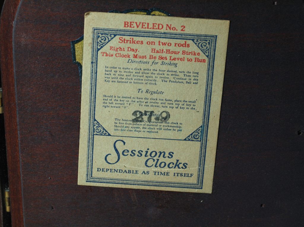 This Sessions tambour style clock represents a very popular style of clock sold in the 1920s and 1930s in the USA.