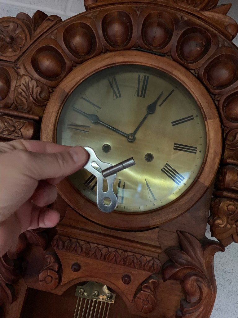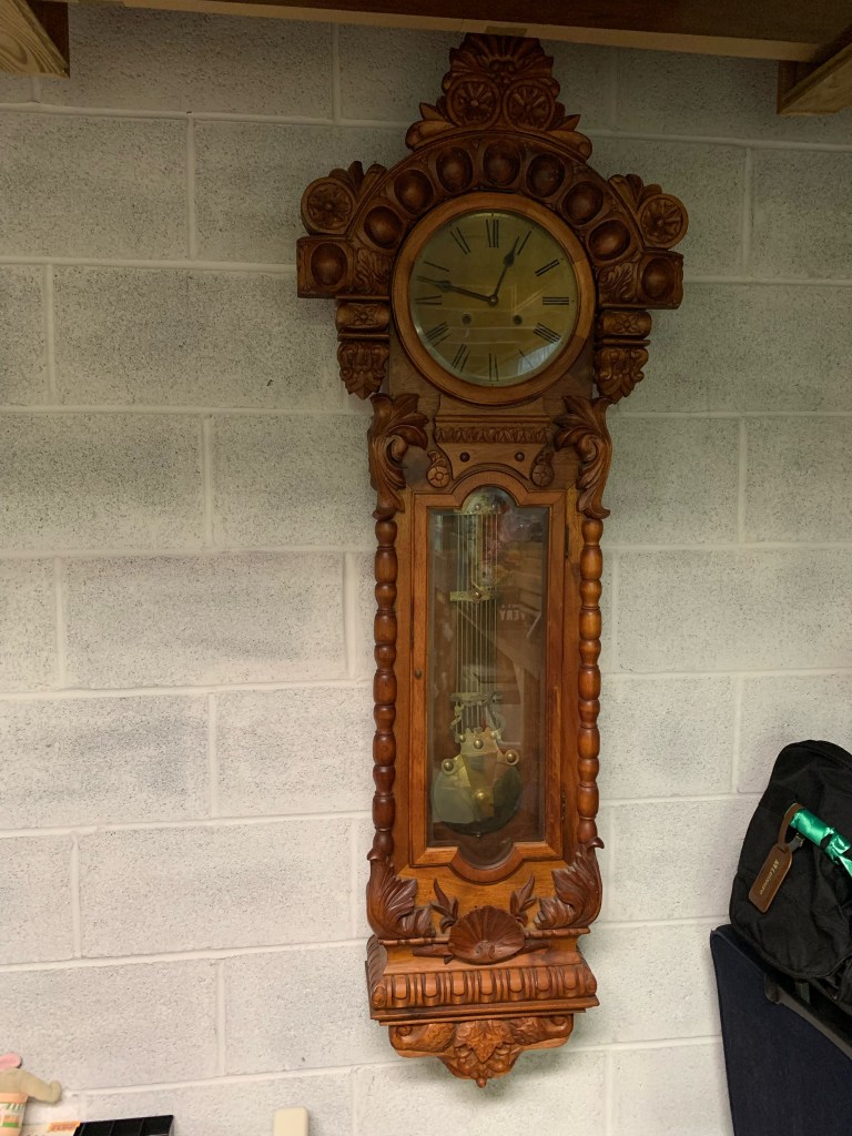 We bought this wall clock about 30 years ago at an auction. We would like to sell it. Can you tell me anything about it and/or it’s value? I appreciate your time.