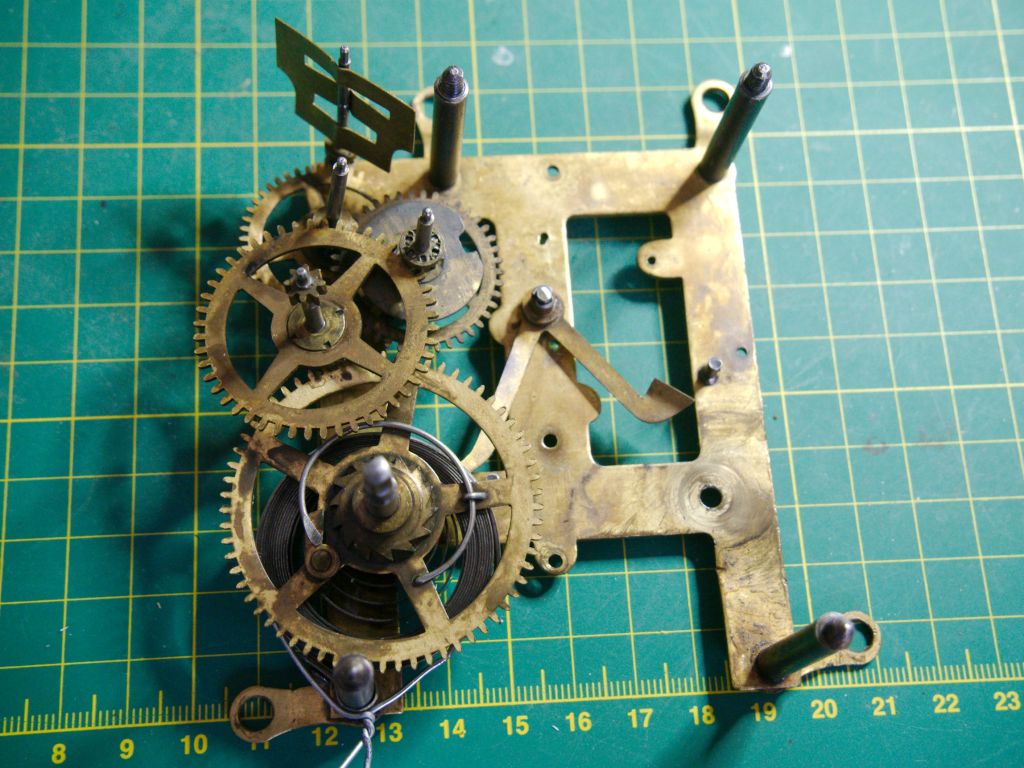 As it is a 30-hour movement the mainsprings are not as powerful as one would find in an 8-day clock although I always use care when working with mainsprings and wear thick work gloves.