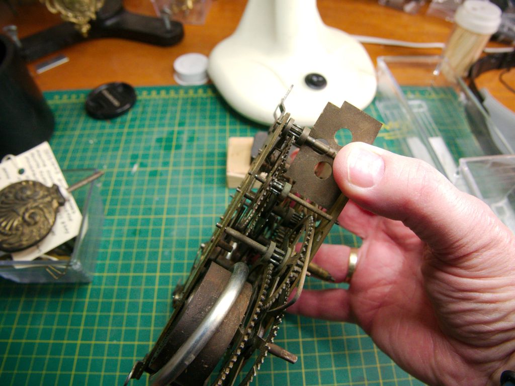 Most, but not all, American time and strike clocks have helper springs to maintain tension on lifting and locking levers. Springs are occasionally removed from a movement either because they are broken and/or repairers do not understand their function.