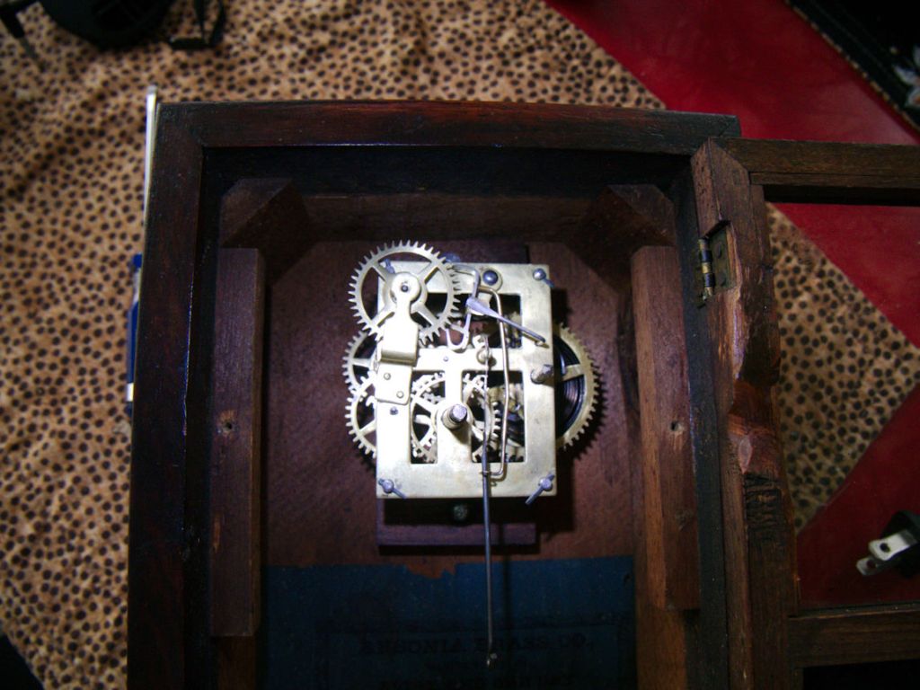 So, why is this clock not worth much more than my sister paid for it? It’s had a hard life and has likely been altered in several ways. Original movement? It’s hard to say as there are no markings on it. Well worn? Yes! Pendulum, crutch, the mainspring, pallets; probably replacements. And why the notches on the rear of the access door?