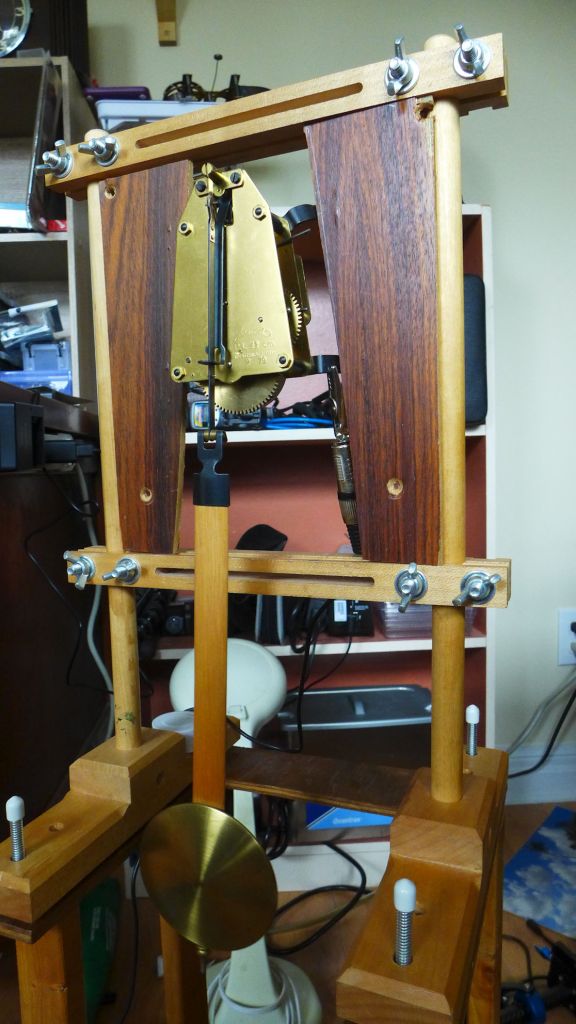 Two vertical pieces that looked like wallboard or laminate flooring hold the movement in place. The two sides are secured with 2 Robertson screws. I doubt the manufacturer would have used Roberton screws since this type of screw is widely used in Canada but seldom elsewhere.
