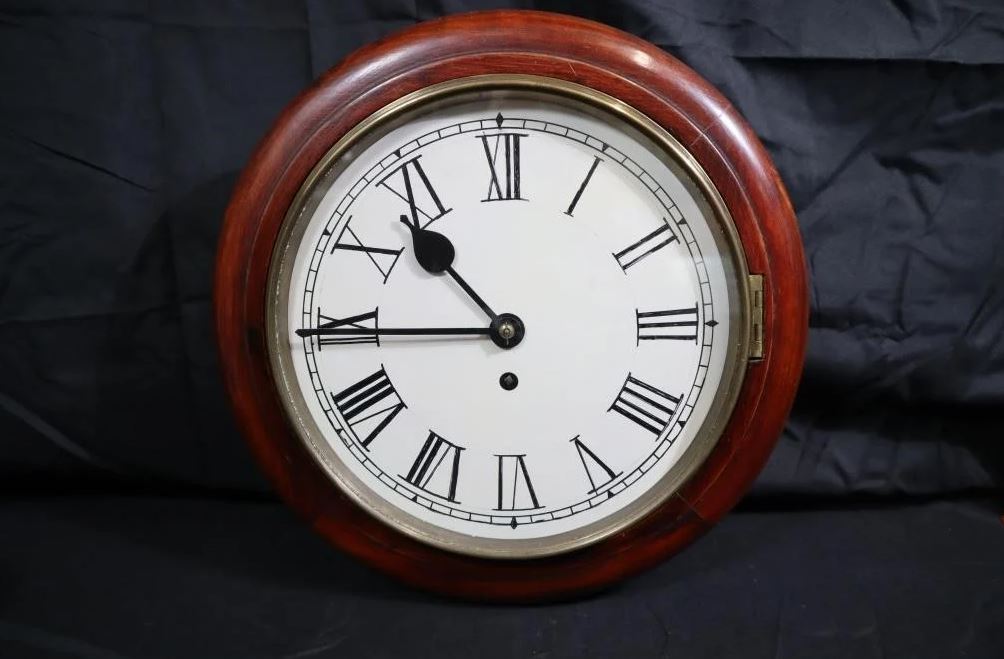 I was hoping this was a fusee clock when I bid on it on an online auction in the spring of 2022 but it is a spring-driven 8-day clock with a fairly robust movement that was intended for commercial use, a store, an office environment perhaps.
