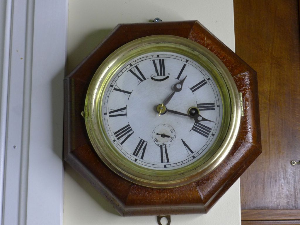 This 30-hour spring wound clock with a hairspring lever escapement simply tells the time. It was made in the 1870s and perhaps earlier. It has been serviced, bushed, and cleaned, but my challenge at the moment is setting up the hairspping. It will work but not well.