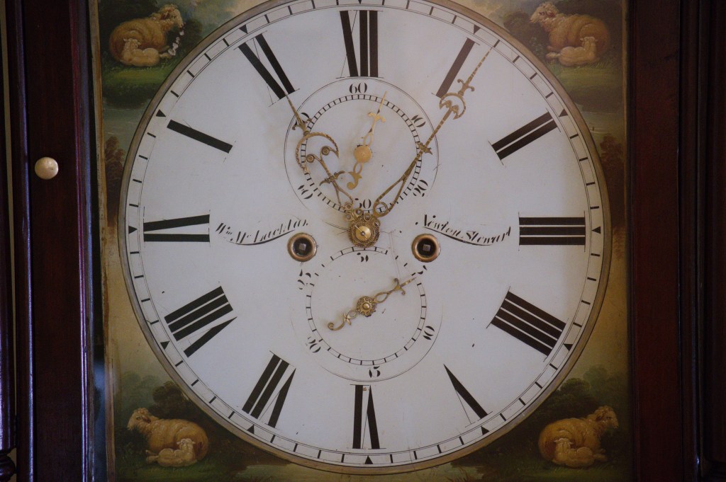 What does the shepherd and sheep theme on the dial mean? The clock was presumably made for a well-to-do Scottish sheep farmer. I can only imagine the magnificent striking sound of this clock in a farmers’ home during the 1850s or so and the stories it could tell.