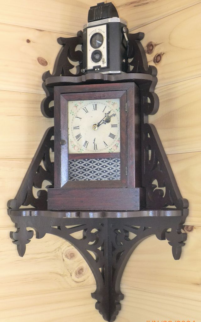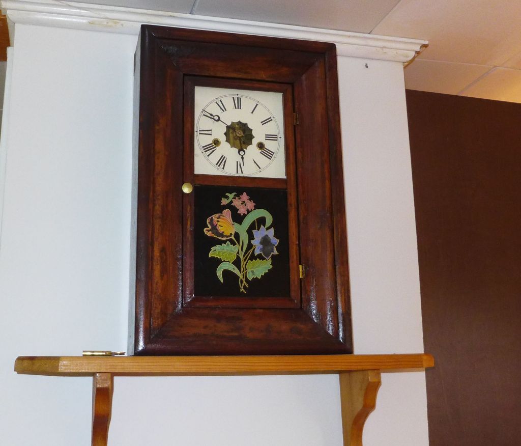 Inside the main part of the cottage which comprises the kitchen, dining, and living area are 3 clocks, a Hemle time and strike weight-driven wall clock, passed on by my wife’s uncle, known as a wag-on-a-wall clock, an Empire time-only gallery-style clock from England, and a 30-hour New Haven miniature ogee.