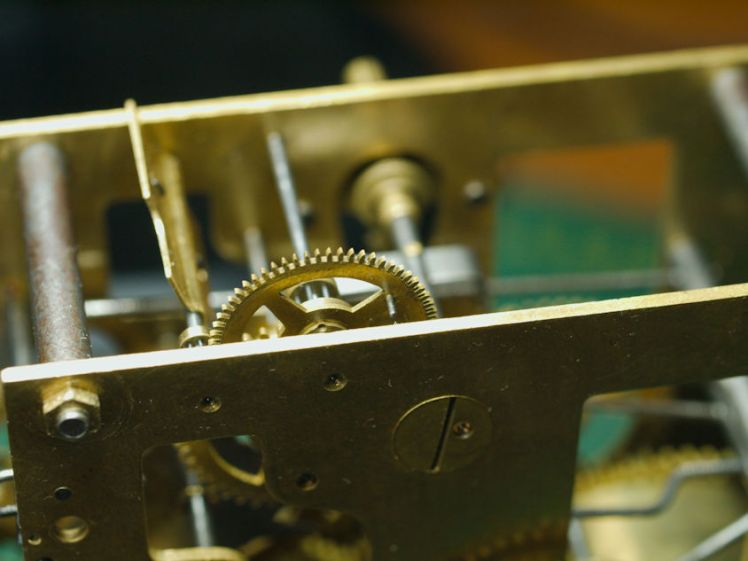 Over the years, the clock ran well for a while, then faltered, especially in the strike train. A broken lever spring, a bent arbor, erratic striking, and a few close calls with delicate repairs have all played a part. In late 2024, the clock began stalling just before the warning phase, prompting me to extract the movement from its case to determine the cause of the stoppage.