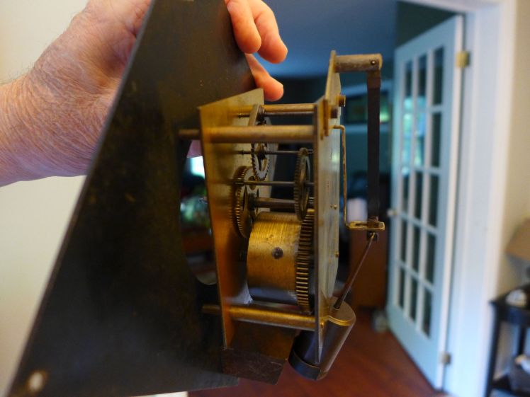 I was hoping for a fusee clock, as many English gallery clocks are fusees, but when I saw this one offered at auction, I knew from the price that it probably wasn’t what I had hoped for—but I bought it anyway.