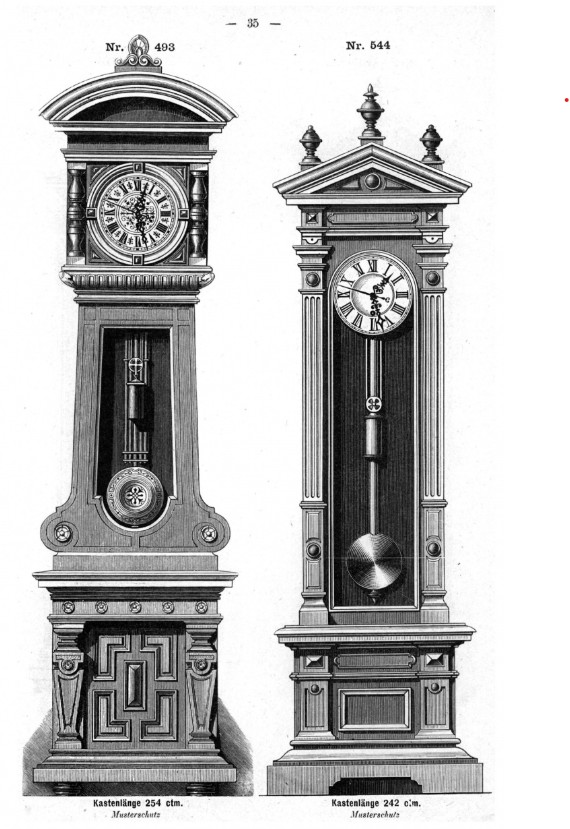 Eventually, Lenzkirch began full in-house movement assembly, with wooden cases imported and finished at the factory. The company’s reputation soared with the introduction of its German regulator, which won numerous awards in 1860–61. The Viennese-style wall regulator also gained popularity. The firm invested in R&D to develop durable mainsprings, both for its own clocks and others.
