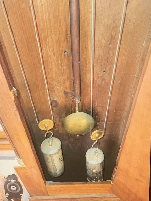 There may be a name or trademark on the backplate or front plate of the movement but I have found that to be less common with many clocks having generic “English-style” bell strike movements. Even less common is a signature found inside the case door or on the backboard. Sometimes, paper labels were pasted inside the case though extremely rare.