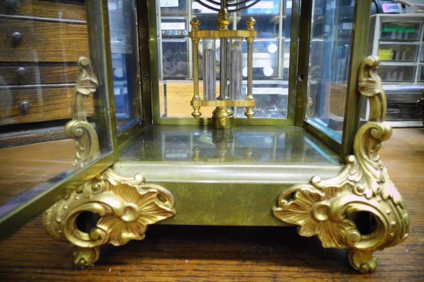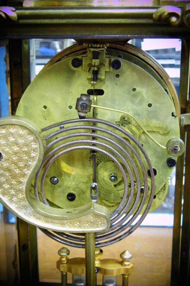 The mainsprings are in good condition and there is plenty of power though there is more oil than necessary within the barrels. After assessing the movement I could see that there had been no significant repairs in the past. The crutch has been bent in several places in an attempt to adjust the beat but otherwise, everything looks reasonably good for the age of the clock.