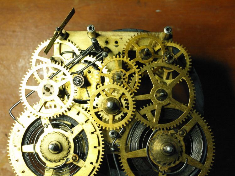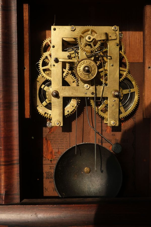 This is a well-made movement. Early Junghans movements were robust and strong runners. I have heard stories of Junghans clocks from this era running well despite being very worn. Junghans’s movements are a cut above Mauthe, Hermle, HAC, and other mass-produced German clocks made during this period, in my view. The movement exudes quality with solid front and back plates though lantern pinions are favoured over cut pinions.