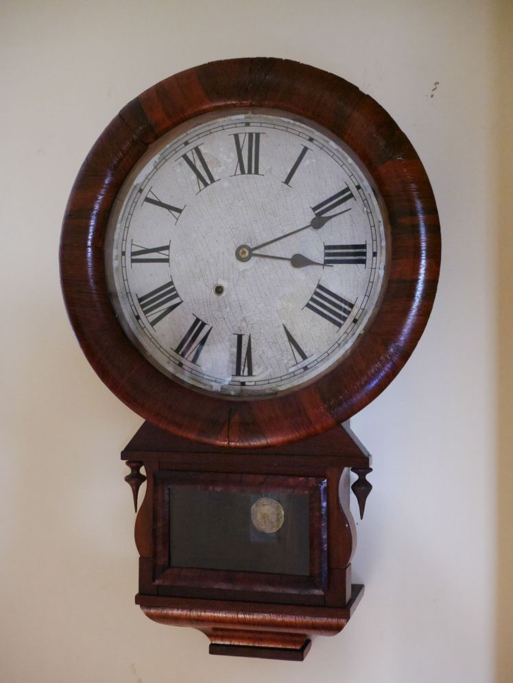 The movement has been serviced at least once, so far as I can determine. There is an “S” mark on the strike side barrel cap, helpful when returning the barrels to their correct location. I did not measure the mainsprings but the strike side spring is notably longer than the time side. There are two possible reasons, one that the strike side mainspring was replaced at some point in the clock’s life, or two, there is more load on the strike side requiring a stronger spring.