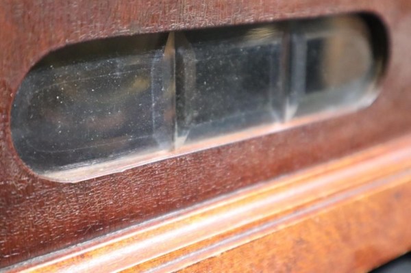 Both the case, made of quarter-sawn oak, and the brass movement were produced by the Arthur Pequegnat Clock Company in their small Kitchener factory until 1941. The company stopped production abruptly due to brass shortages during the Second World War.