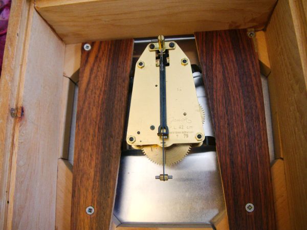While the clock is reliable and has been an excellent timekeeper it suffers from one small flaw. On day six of the weekly cycle, the clock stops. As the weights descend to the level of the pendulum a harmonic phenomenon occurs. A harmonic phenomenon is defined as “a vibratory body responding to external vibrations to which it has a harmonic likeness”.