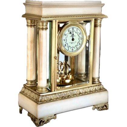 Although the movement plates are over 3mm thick, there is no visible maker’s mark. The robust movement, crafted in the Guild style, features an anchor escapement. These movements are commonly known as an “English bell strike”. Common in 19th-century England they were made by craftsmen who were members of guilds, such as The Worshipful Company of Clockmakers which exercised strict control over clock-making within a certain radius.