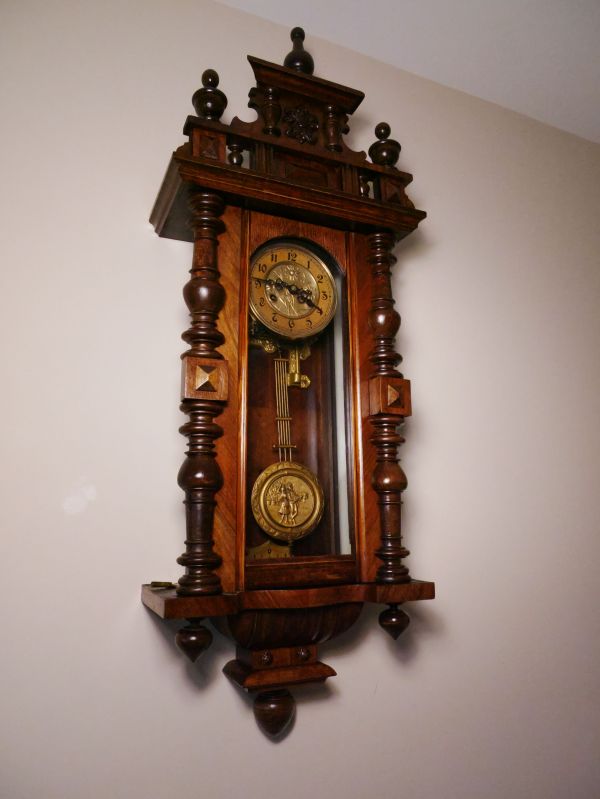 Overall, the clock is in good condition for its age and was made somewhere between 1905 and 1910. The brass, though tarnished, cleaned up nicely with the use of a cleaner. The brass was also lacquered to maintain its shine and protect it from deterioration.