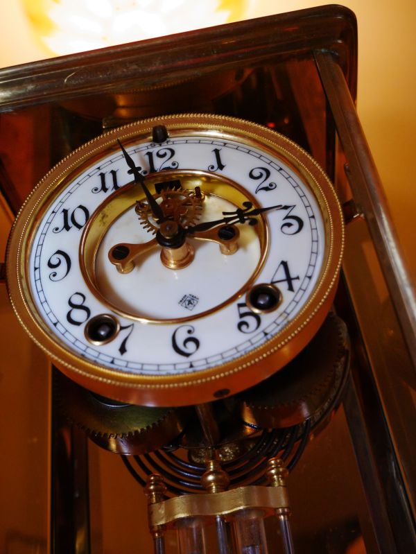 Collectors in the clock world frequently have discussions regarding the proper name for these clocks. Are they four-glass clocks or crystal regulators?