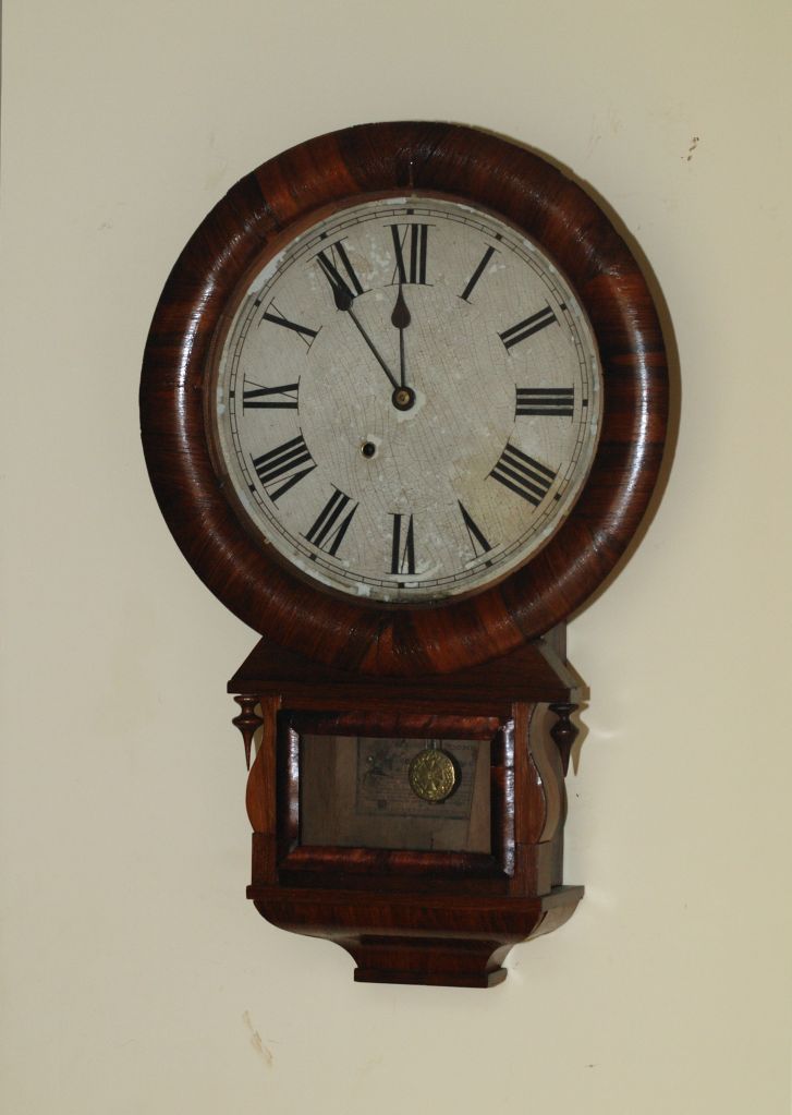 This Ansonia Extra Drop time-only Rosewood veneered wall clock was manufactured in the early 1880s by what was then known as the Ansonia Brass and Copper Company.
