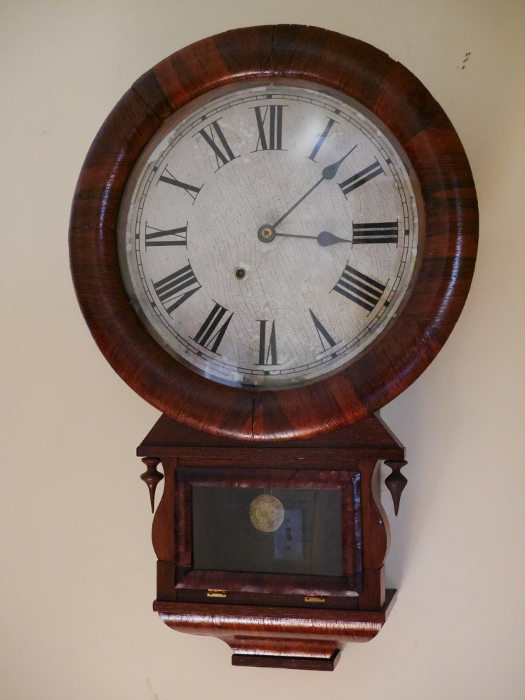 The clock keeps good time, but there’s an issue with the strike side. While the strike has a pleasant sound, it operates erratically. This may be an adjustment issue that will require removing the movement from the case for further inspection.